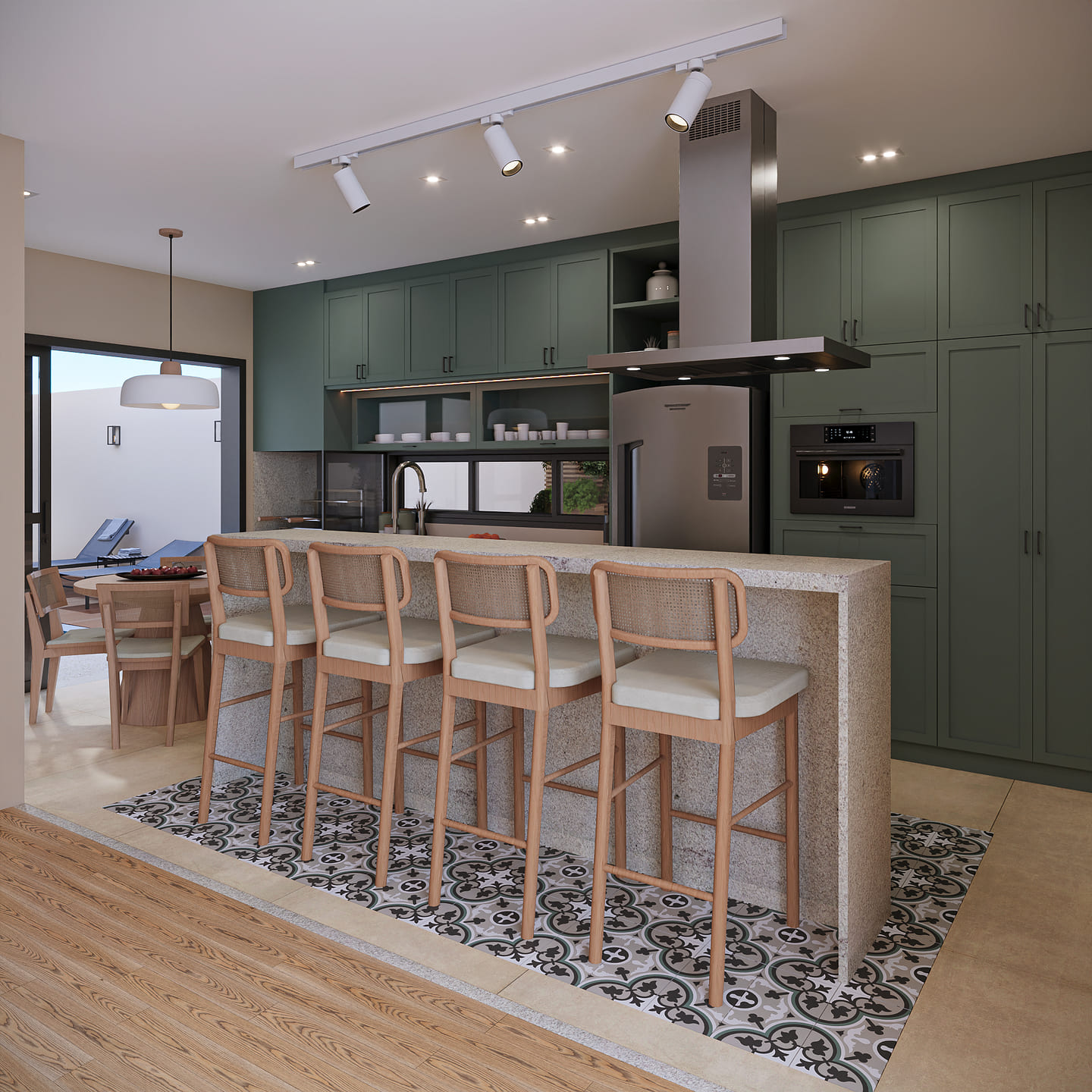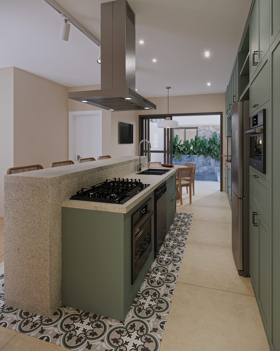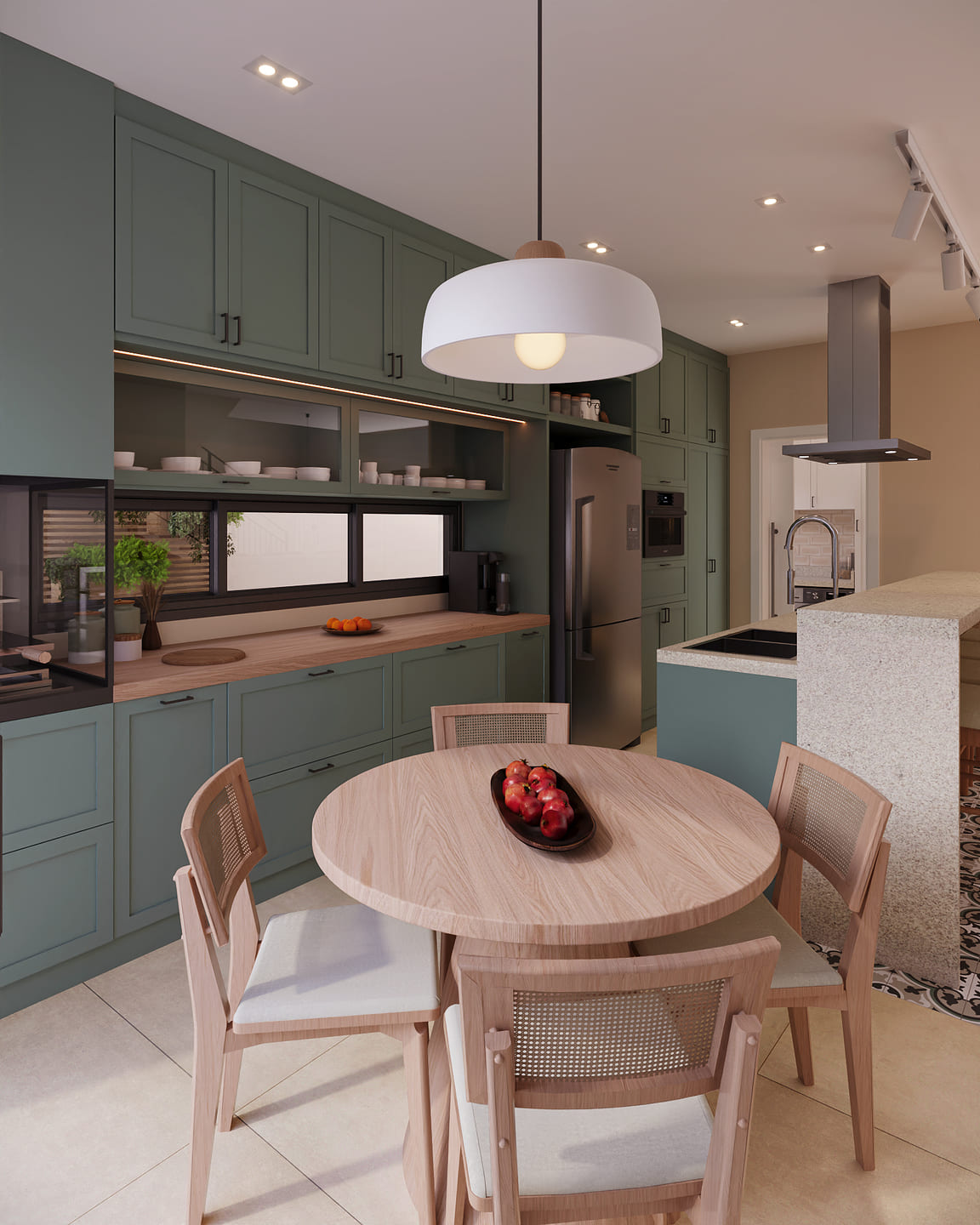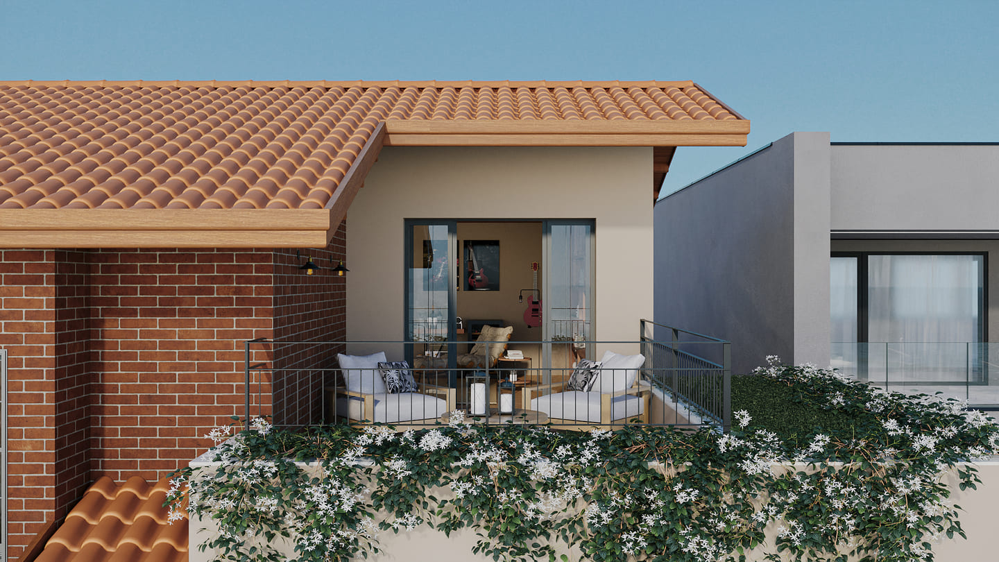 Inspirada na ideia de “casa com cara de casa”, esse projeto traz o aconchego e a simplicidade solicitados pelos clientes: telhado aparente, tijolos à vista e o charme dos revestimentos coloridos como o ladrilho hidráulico.